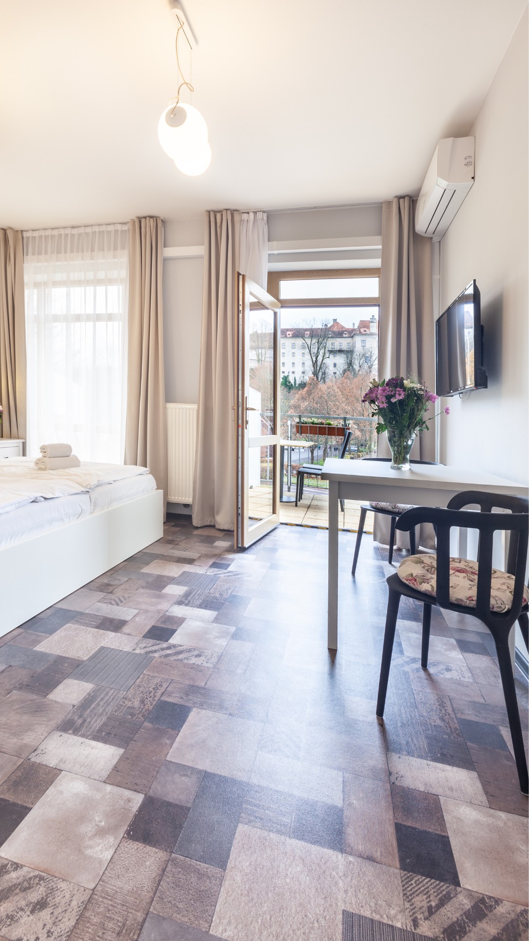 Užijte si naše Apartmány u zámku Český Krumlov s nevšedním výhledem na státní hrad a zámek Český Krumlov. U nás strávíte svůj pobyt mimo centrum, zároveň máte vše v dosahu – zámek 3 minuty chůze, náměstí Svornosti 5 minut chůze. Každý apartmán má svou vlastní koupelnu, kuchyňský kout a posezení, samozřejmostí je vysokorychlostní WiFi zdarma. Některé apartmány mají balkon a klimatizaci.